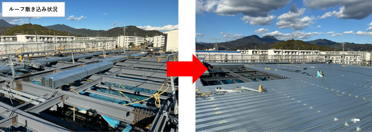 現場では、ルーフの敷き込み作業を行い、建物全体を雨風から守る工程へと進みました。